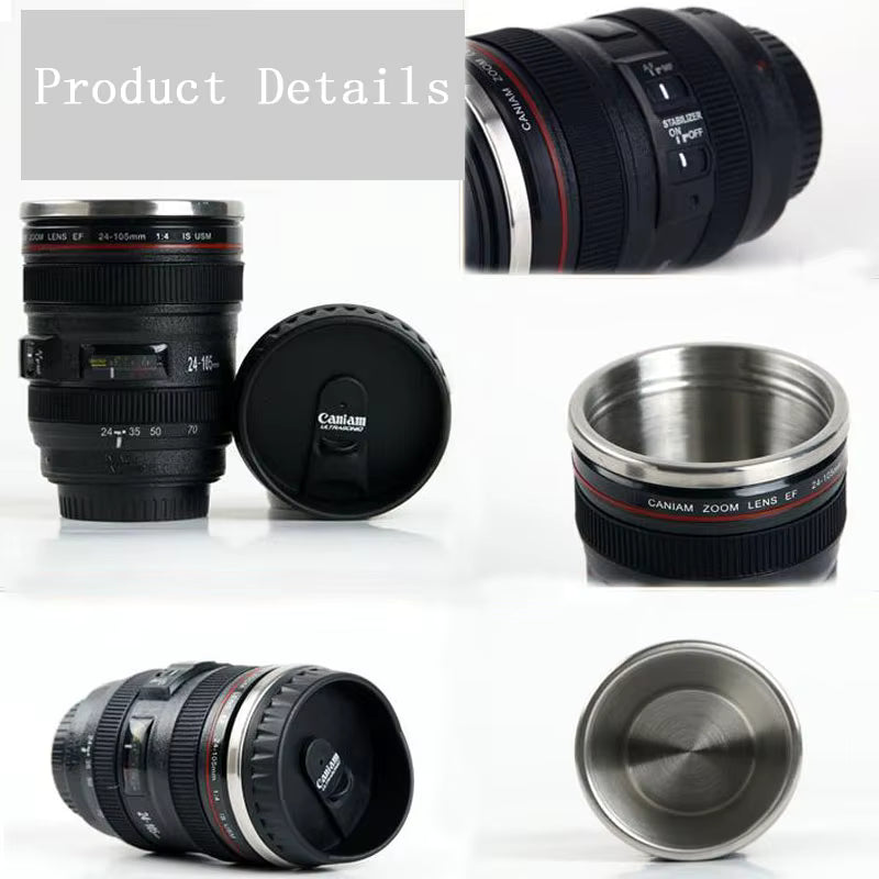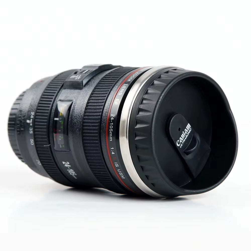 Unique Camera Lens Design: Realistic SLR lens shape with transparent lens lid – perfect for photographers and coffee lovers