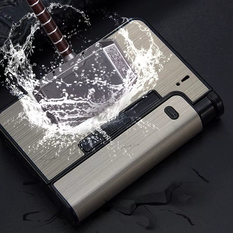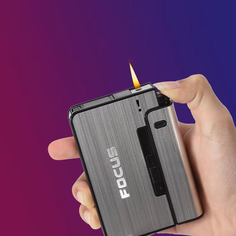 Built-in Refillable Lighter: Windproof, sharp-flame lighter integrated into the cigarette case for convenient, on-the-go use