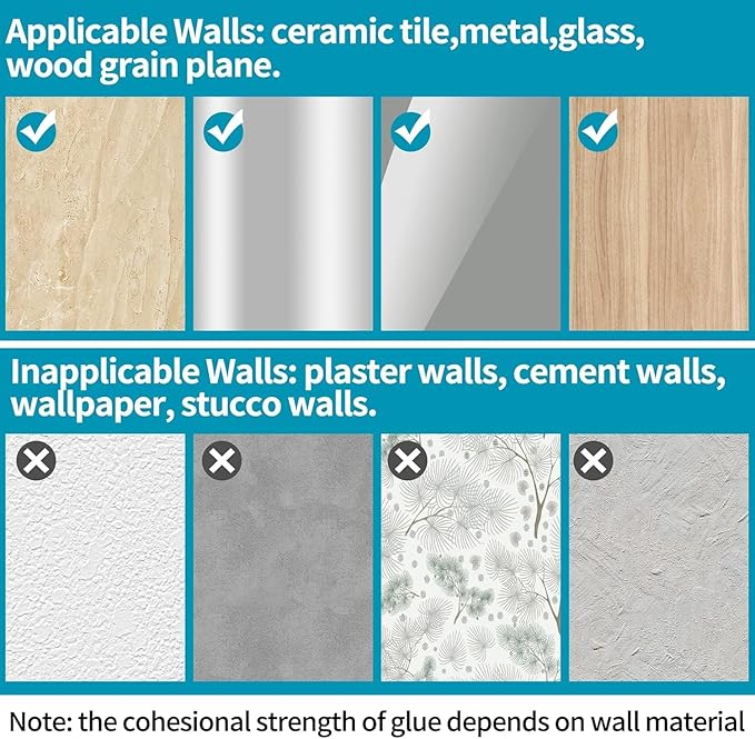 Easy Installation: Strong adhesive backing—peel and stick on smooth surfaces, no drilling required