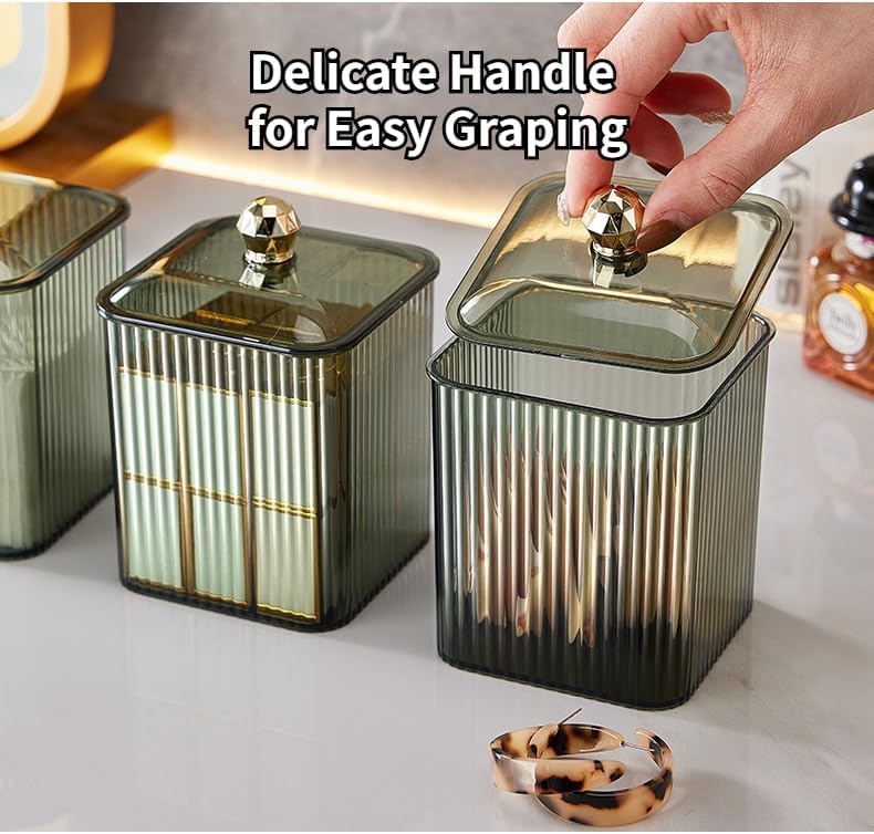 Its minimal, modern design blends seamlessly into bathrooms, dressing tables, kitchens, and bedrooms—adding a neat, decorative touch while keeping Q-tips, cotton pads, cotton balls, and cosmetic tools within easy reach. Lightweight yet impact-resistant, it’s perfect for home, travel, or camping.