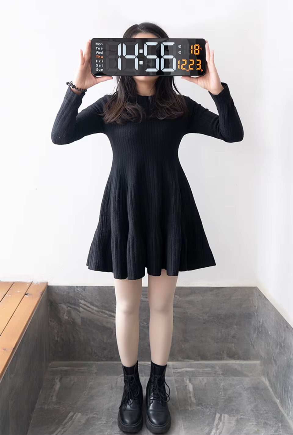 Large LED Digital Display: Clear, large Arabic numerals show time, date, temperature & week on one screen for easy readability