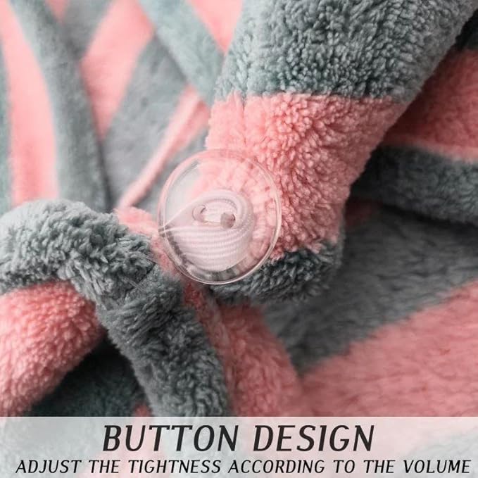 Stay dry and comfortable with this super absorbent Dry Hair Cap made from soft cotton fiber. Designed to absorb moisture quickly, it gently dries hair without stiffness or damage. The breathable fabric balances moisture for all-day comfort, while the button and loop closure ensures a secure fit for all hair types. Perfect for daily showers, spa time, travel, or home use, this quick-dry hair towel cap is a must-have bathroom essential for women