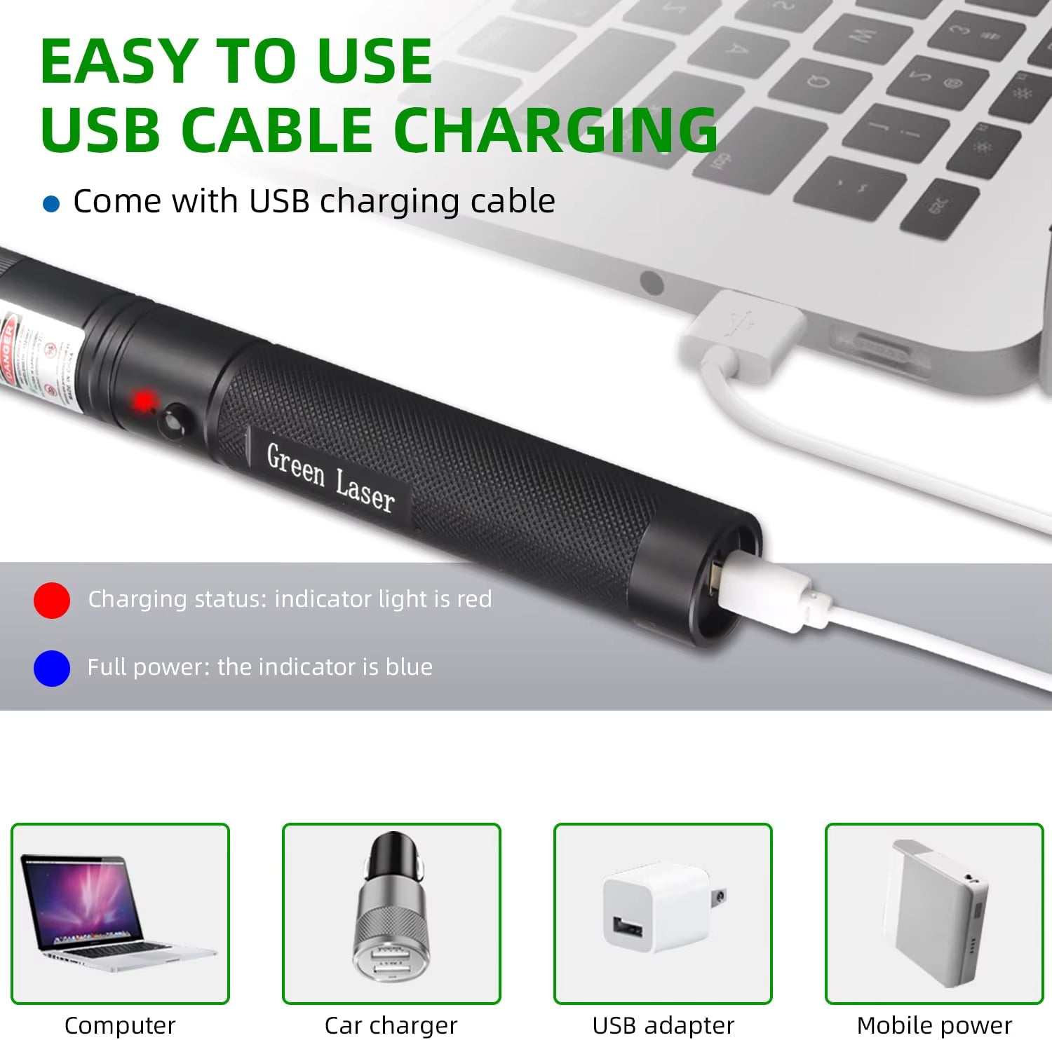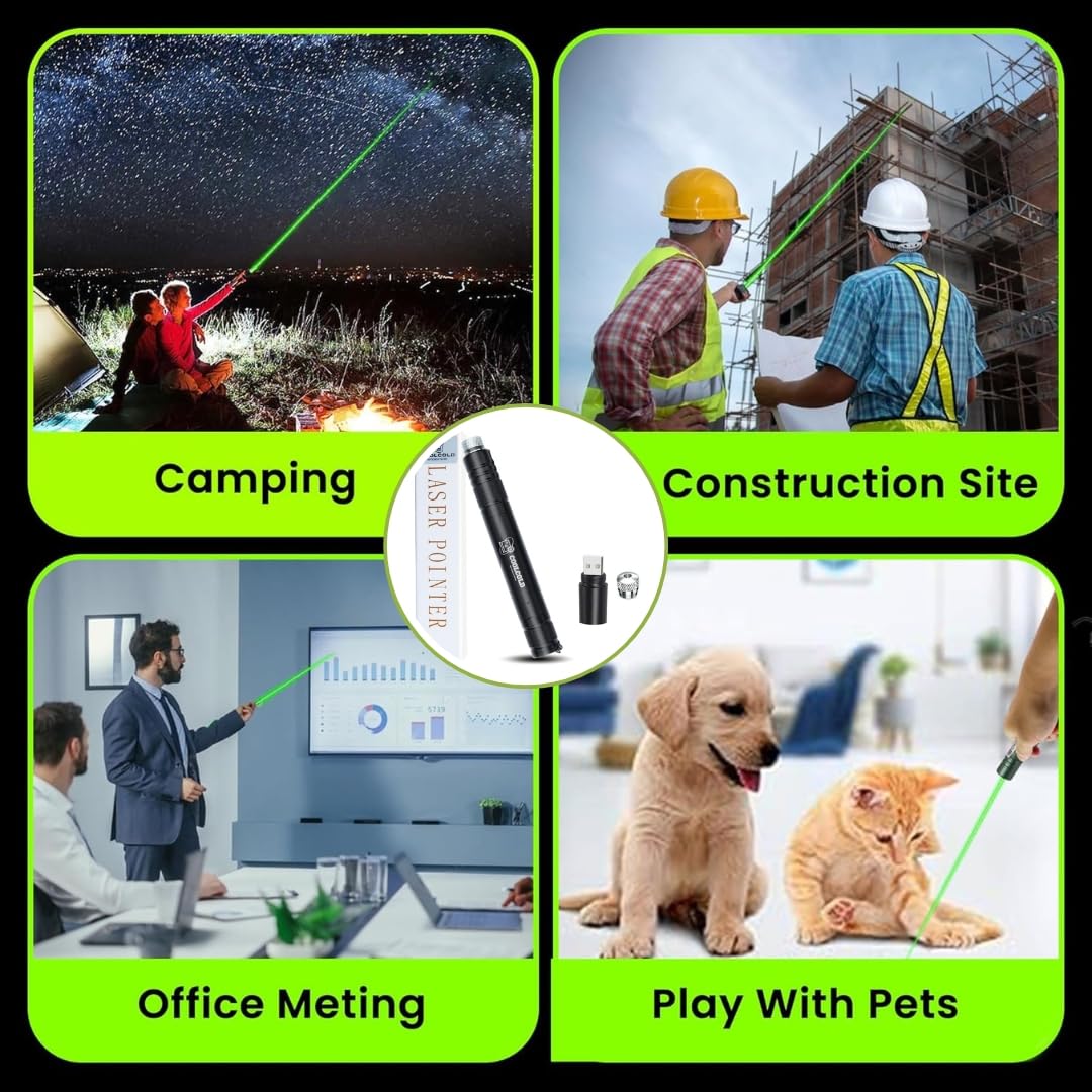 High-Power Laser Beam: Projects a bright green laser up to 2000 meters at night