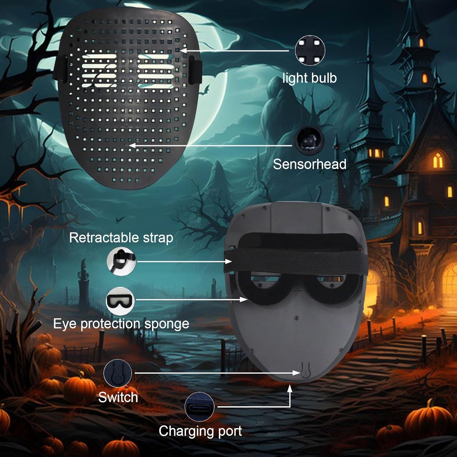 Gesture Control LED Mask: Change patterns easily with hand gestures for interactive, hands-free fun