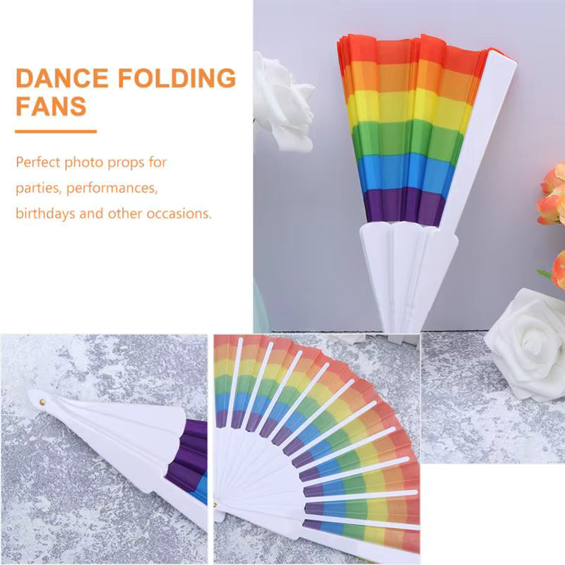 Colorful Rainbow Design: Stylish and trendy foldable hand fan with a vibrant rainbow finish for an elegant look