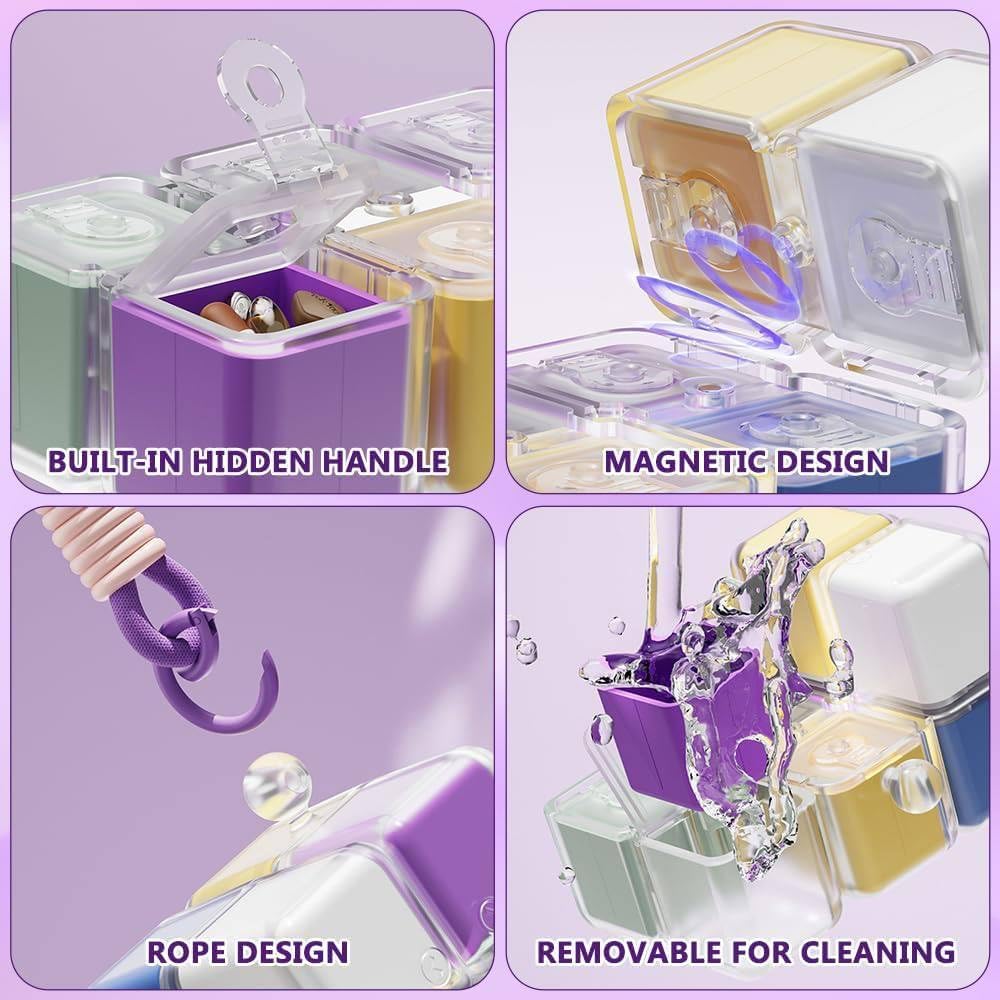 Compact Rubik Cube Pill Box offers smart, portable medicine storage for daily use and travel. This magnetic pill organizer keychain securely stores tablets, capsules, and vitamins without spills. The strong magnetic closure keeps compartments locked, while the durable, lightweight build ensures long-lasting use. Designed with a key ring attachment, it clips easily to keys, bags, or backpacks for quick access. The easy-open rotating compartments make taking medicine simple and hassle-free—perfect for travel, work, and everyday organization.