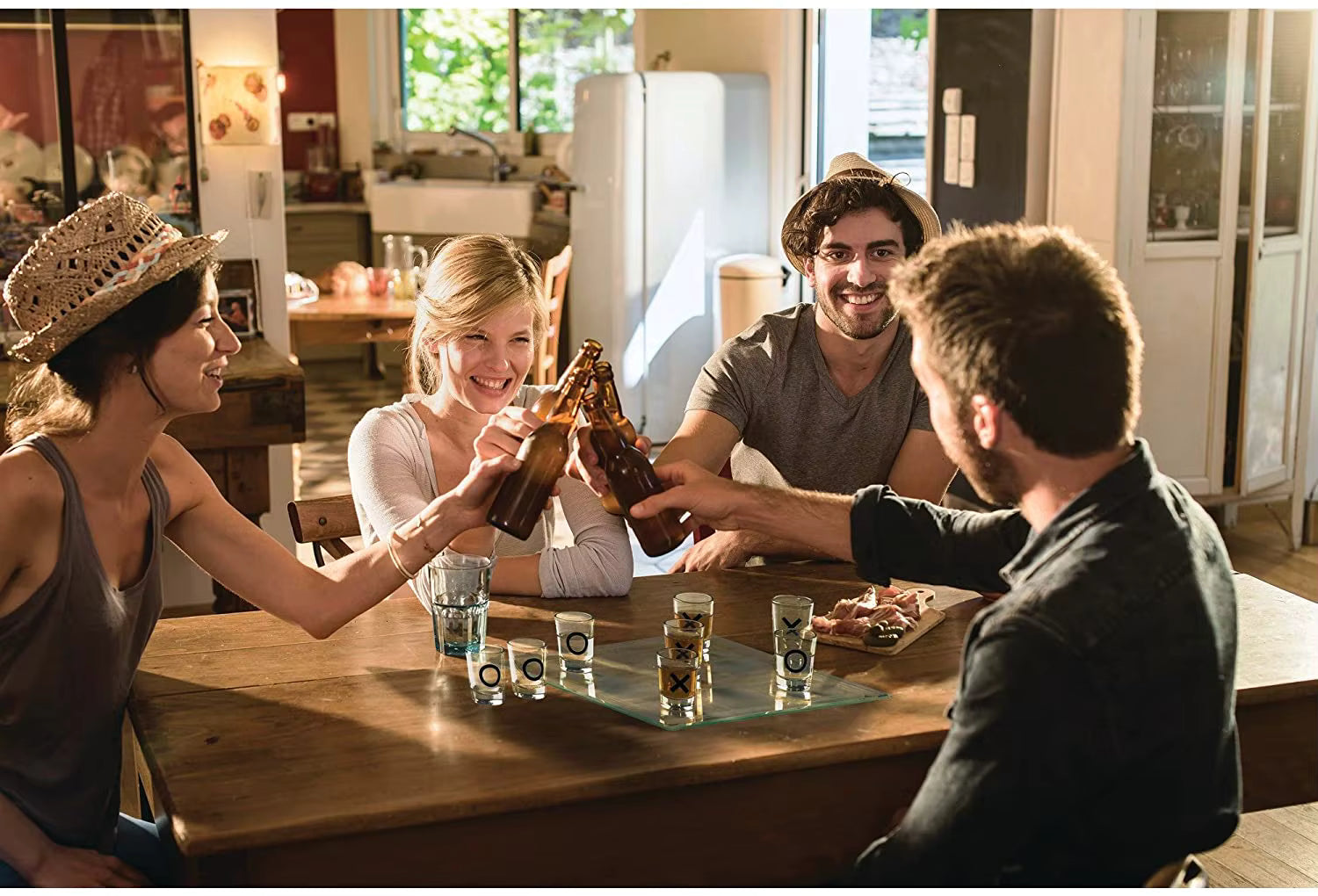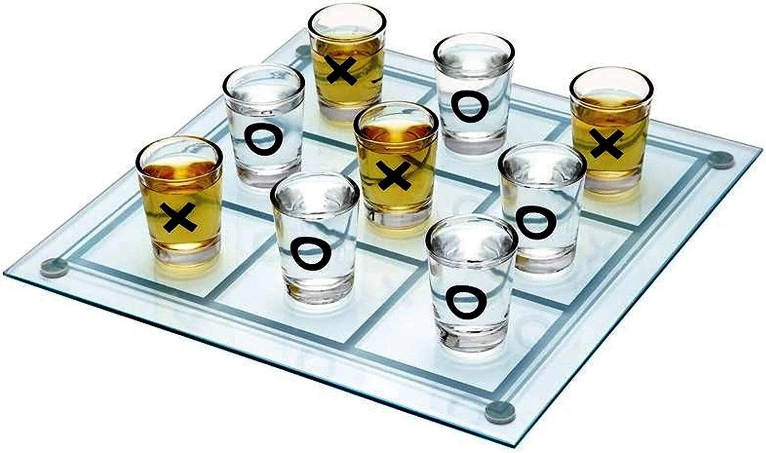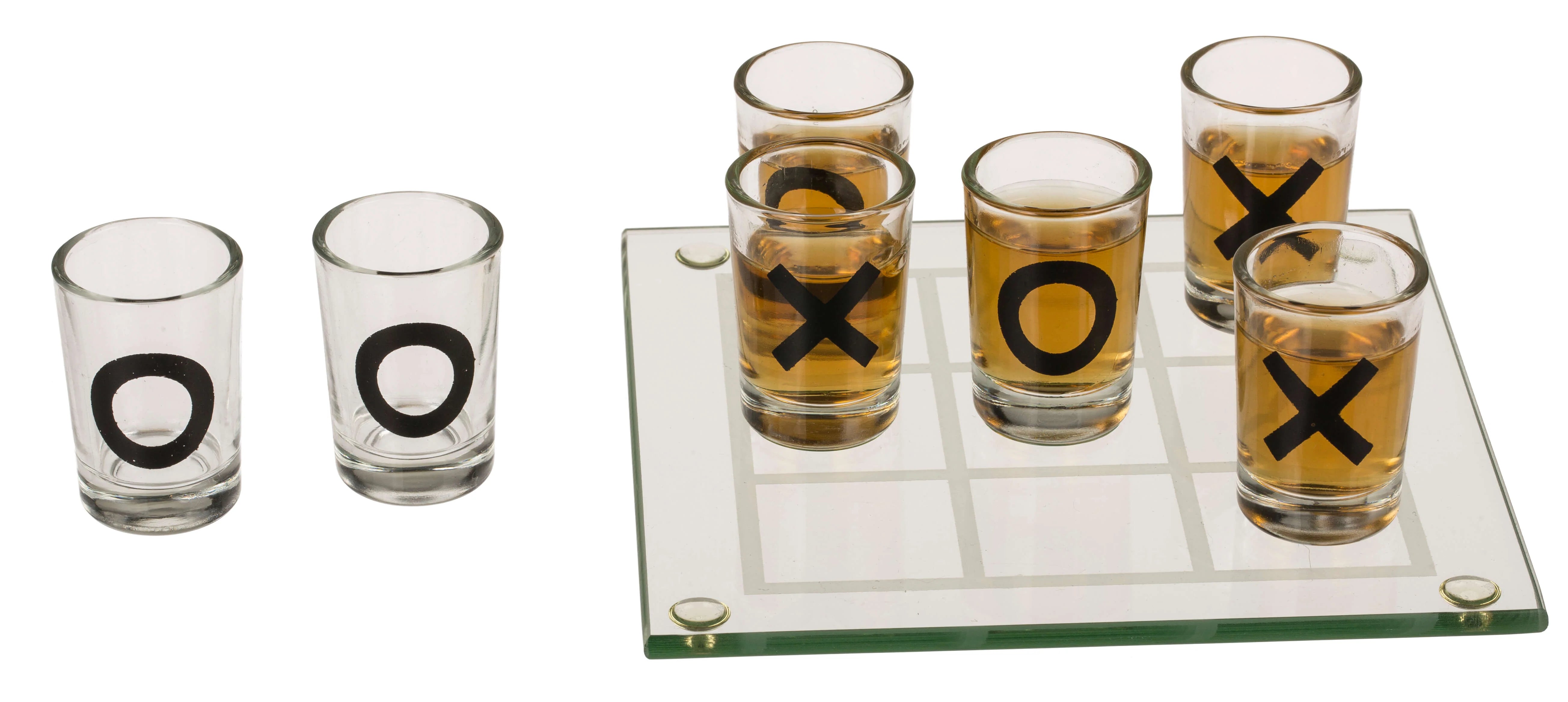 Complete Drinking Game Set: Includes a premium glass tic tac toe board and 9 reusable shot glasses marked with Xs and Os